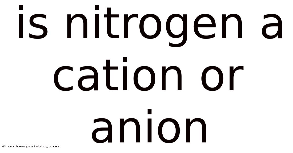 **Is nitrogen a cation or anion?**This question often arises when students first encounter ions in chemistry, and the answer depends on the context in which nitrogen is found. In its neutral atomic form, nitrogen carries no charge, but when it gains or loses electrons, it can become either an anion or a cation. Understanding this transformation requires a clear grasp of electron behavior, typical oxidation states, and the environments—such as acids, bases, or ionic compounds—where nitrogen participates. This article will explore the nature of nitrogen ions, explain why nitrogen most commonly forms anions, and clarify the rare circumstances that produce nitrogen cations Worth keeping that in mind..