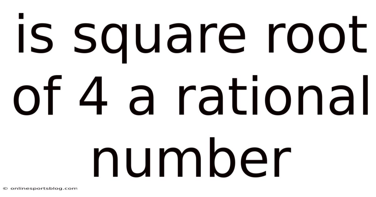 - Conclusion: Since √4 simplifies to the integer 2, and 2 can be expressed as the ratio of two integers (2/1), the square root of 4 is unequivocally a rational number.