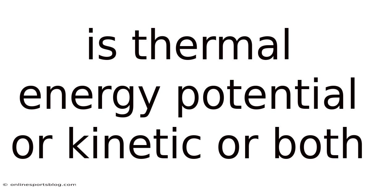 Thermal energy is a concept that bridges the microscopic and macroscopic worlds, yet its classification often sparks debate. But is it purely kinetic, purely potential, or a combination of both? At its core, thermal energy refers to the total internal energy present in a system due to the kinetic and potential energies of its particles. Because of that, the answer lies in understanding how energy manifests at the molecular level and how scientists define and measure it. This article explores the dual nature of thermal energy, clarifying its components and resolving common misconceptions.