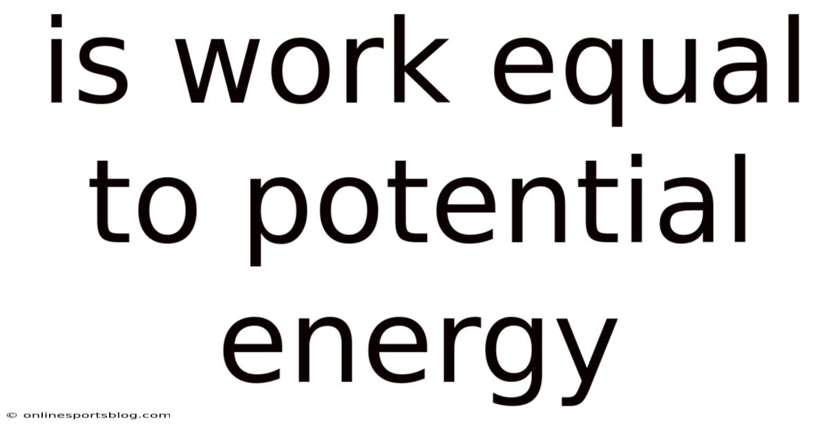The question “Is work equal to potential energy?In practice, ” Still, a deeper look reveals important distinctions rooted in the definitions of work, potential energy, and the conditions under which they are related. On the flip side, at first glance the two concepts seem interchangeable—both involve forces, displacement, and the notion of “energy stored” or “energy transferred. ” often appears in high‑school physics textbooks, online forums, and even in casual conversations about energy. This article unpacks the relationship between work and potential energy, explains the underlying physics, and clarifies common misconceptions so you can confidently answer the question in any academic or real‑world context And that's really what it comes down to..