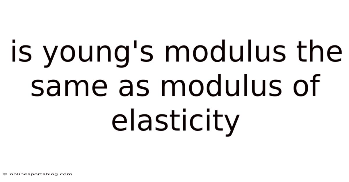 Young's modulus and modulus of elasticity are terms that frequently appear in engineering textbooks, material science lectures, and design calculations, often leading to the question: are they the same thing? Understanding whether Young's modulus equals the modulus of elasticity is essential for anyone studying mechanics of materials, because these concepts govern how solids deform under load and influence everything from bridge design to biomedical implants. This article explores the definitions, origins, mathematical relationships, and practical nuances of these two moduli, clarifying when they can be used interchangeably and when subtle distinctions matter Turns out it matters..