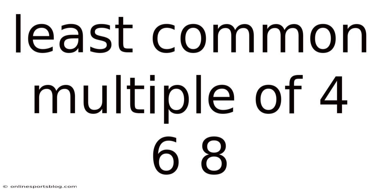 The least common multiple of 4, 6, and 8 is 24. Think about it: this fundamental mathematical concept appears frequently in fraction operations, scheduling problems, and various real-world applications. That's why understanding how to find the LCM of multiple numbers is an essential skill that students and anyone working with numbers should master. In this practical guide, we will explore multiple methods to calculate the LCM, understand the mathematical reasoning behind it, and discover practical applications in everyday life Most people skip this — try not to..