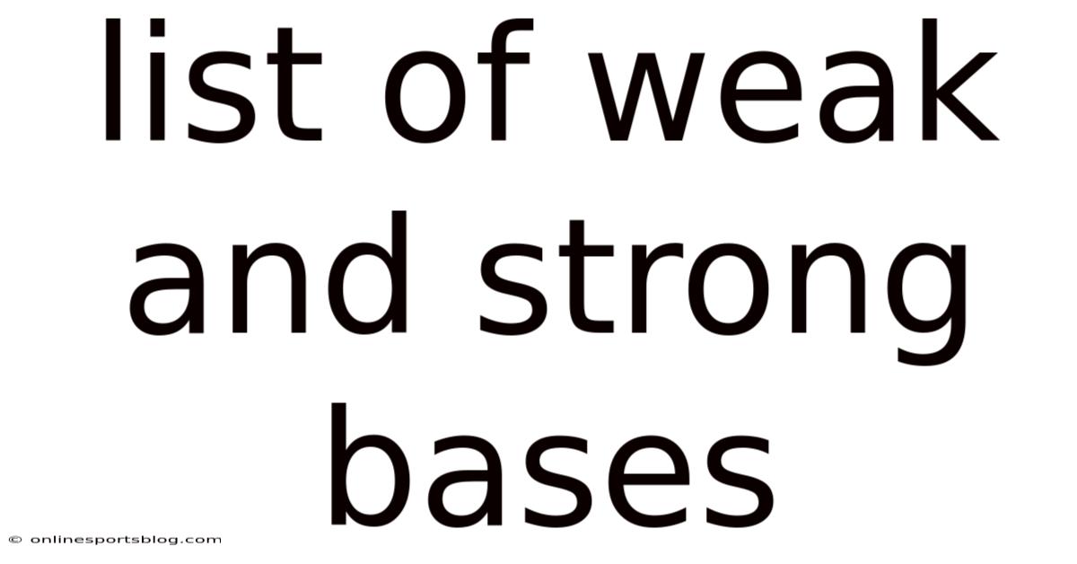The concept of acidity and basicity is fundamental to chemistry, governing reactions from the cellular processes within our bodies to large-scale industrial manufacturing. While acids often receive the spotlight, bases are their essential counterparts. Also, a clear understanding of strong bases and weak bases is crucial for predicting reaction outcomes, calculating pH, and working safely with chemical substances. This article provides a detailed exploration of what defines a strong or weak base, presents extensive lists of common examples, and explains the scientific principles that differentiate them, empowering you with practical knowledge for both academic and real-world applications Simple as that..