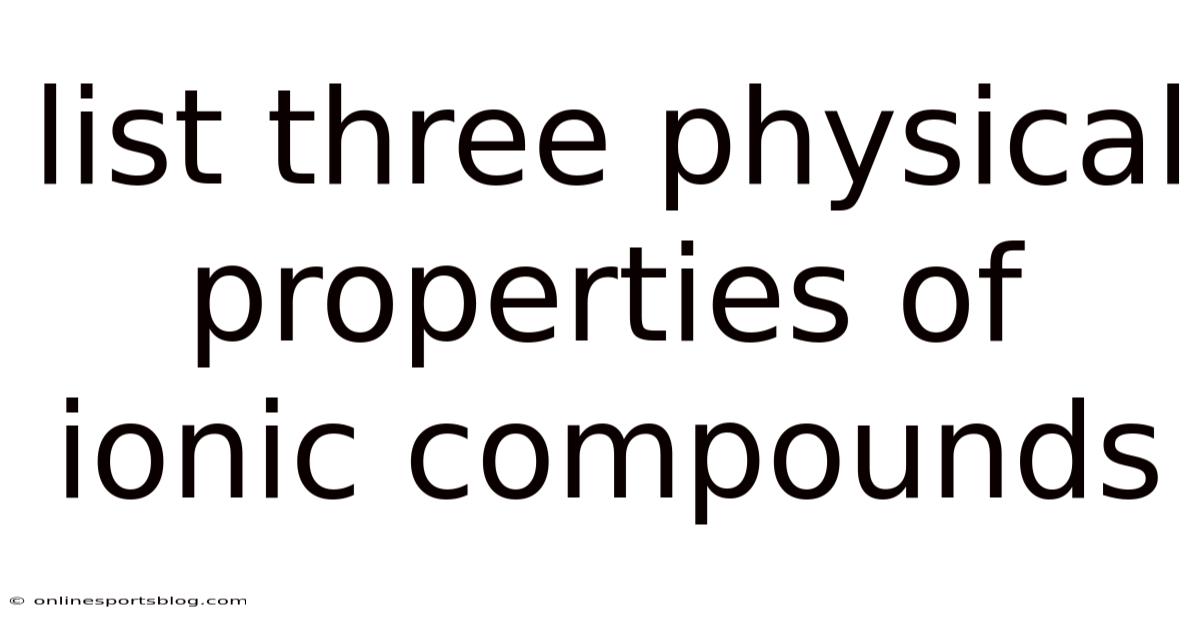 List Three Physical Properties of Ionic Compounds