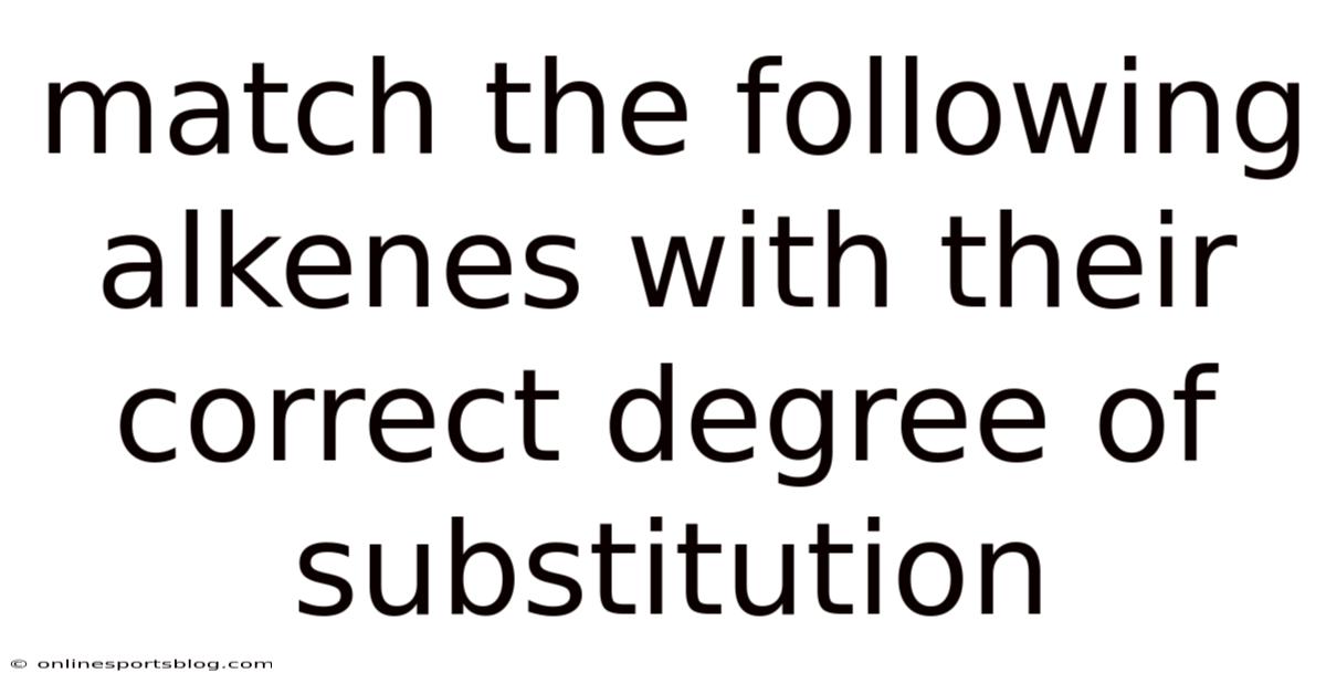 The degree of substitution in alkenes is a fundamental concept in organic chemistry that directly influences the physical and chemical properties of these compounds. Still, matching alkenes with their correct degree of substitution requires a clear understanding of molecular structure and the role of substituents in determining these properties. Worth adding: this classification is crucial for predicting reactivity, stability, and the outcomes of chemical reactions. Alkenes, which are hydrocarbons containing at least one carbon-carbon double bond, exhibit varying degrees of substitution based on the number of alkyl groups attached to the carbon atoms involved in the double bond. By analyzing the arrangement of alkyl groups around the double bond, chemists can classify alkenes into monosubstituted, disubstituted, trisubstituted, or tetrasubstituted categories, each with distinct characteristics.