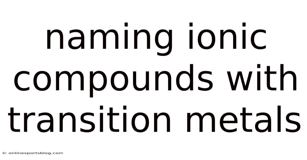 Naming ionic compounds that contain transition metals can feel like solving a puzzle, but once you understand the rules, the process becomes systematic and even enjoyable. Because of that, , Fe²⁺ and Fe³⁺). This article walks you through the step‑by‑step method for naming these compounds, explains the underlying chemistry, and answers common questions that students and hobby chemists frequently encounter. Because the charge of the metal ion directly influences the overall neutrality of the compound, the name must clearly indicate which oxidation state is present. Transition metals often exhibit multiple oxidation states, which means the same metal can form different ions (e.g.By the end, you’ll be able to name any simple ionic compound with a transition metal confidently and correctly.