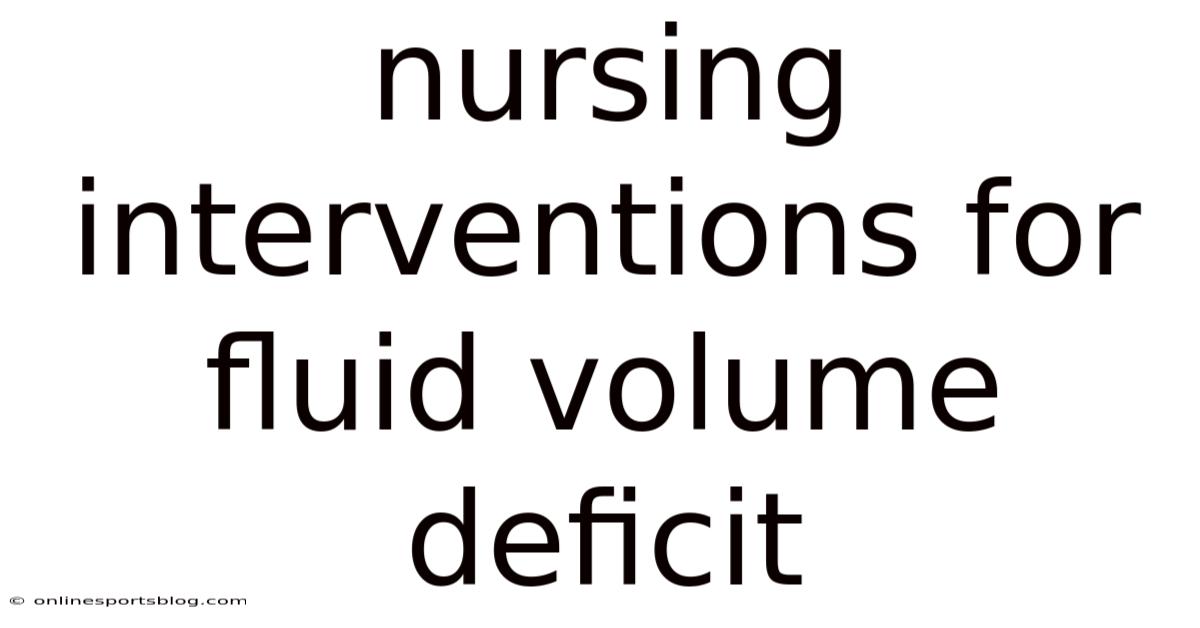 Nursing Interventions For Fluid Volume Deficit