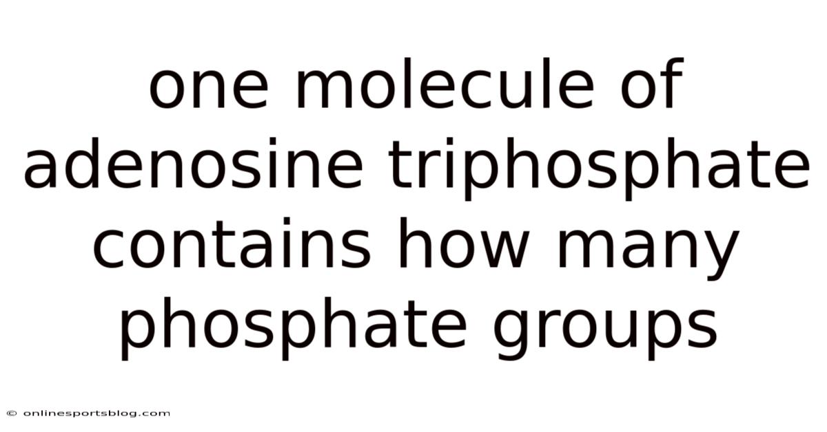 To directly answer the original question: one molecule of adenosine triphosphate contains three phosphate groups. Think about it: these three phosphates, bound by high-energy bonds, are what make ATP the versatile energy carrier essential for all known forms of life. In real terms, from the smallest bacteria to complex human beings, the triphosphate structure of ATP remains one of nature's most fundamental solutions to the problem of energy storage and transfer. Understanding this molecule is not merely an exercise in biochemistry—it is a window into the universal mechanisms that sustain living systems.