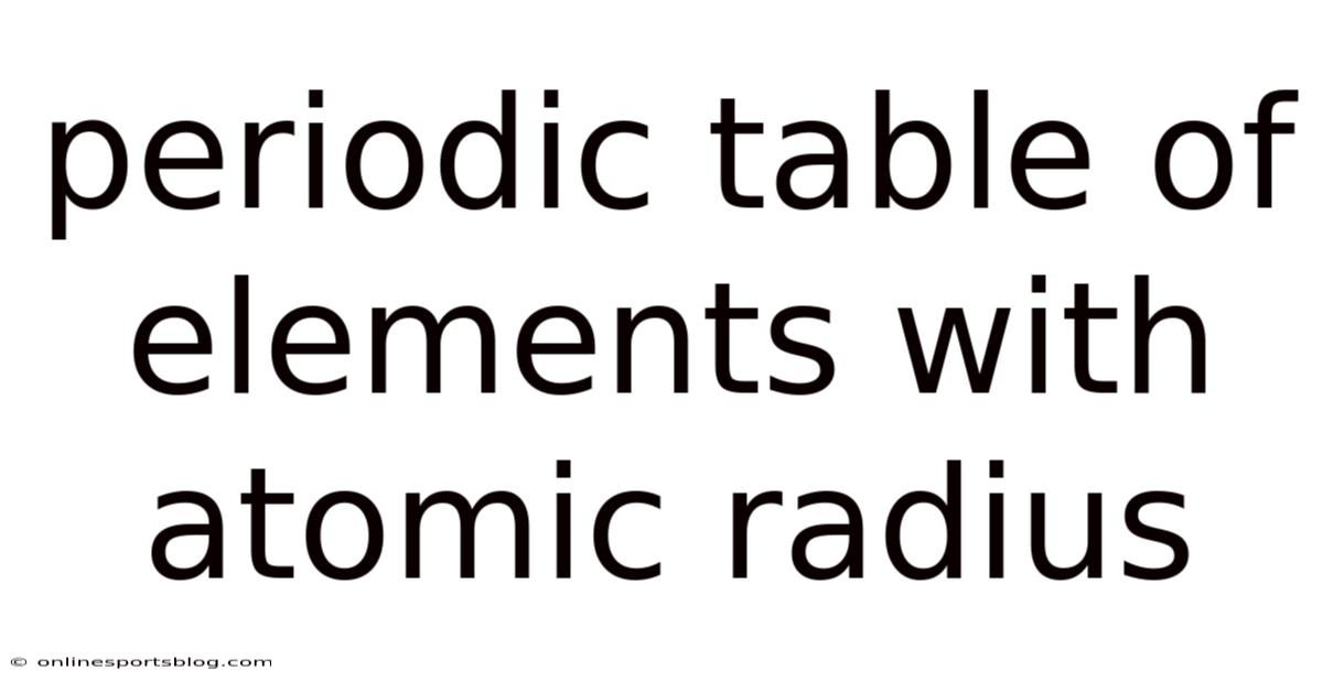 The periodic table of elements is one of the most fascinating and essential tools in the world of chemistry. It not only organizes all known elements but also reveals patterns that help scientists understand the properties and behaviors of matter. That's why among the key features of this table is the atomic radius, a concept that matters a lot in determining how elements interact with each other. Understanding atomic radius is vital for students, researchers, and anyone interested in the fundamentals of chemistry. This article will explore the periodic table in depth, focusing on the concept of atomic radius and its significance in the structure of matter That alone is useful..