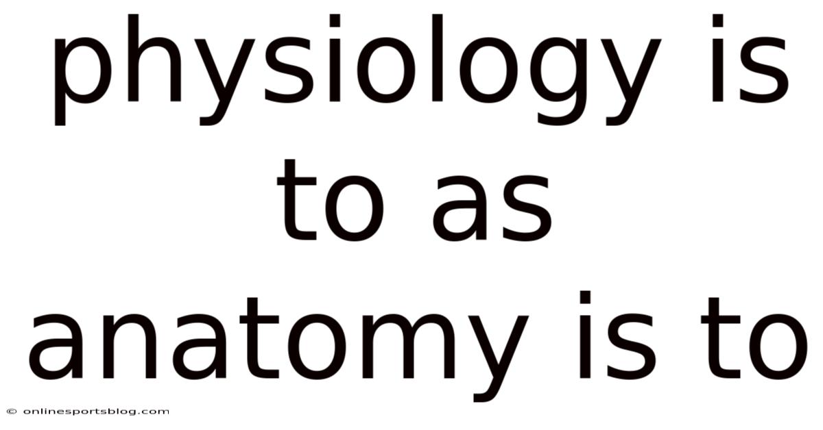 Physiology Is To As Anatomy Is To