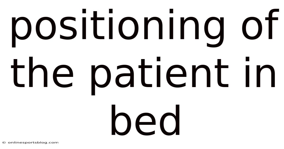 The positioning of a patient in bed is a fundamental aspect of healthcare that directly impacts comfort, safety, and recovery outcomes. Whether in a hospital, clinic, or home setting, proper bed positioning is not merely about physical comfort but also about preventing complications such as pressure ulcers, respiratory issues, and musculoskeletal strain. This practice requires a nuanced understanding of anatomy, patient-specific needs, and evidence-based techniques. By mastering the principles of patient positioning, healthcare professionals can enhance the quality of care and promote optimal healing Simple as that..