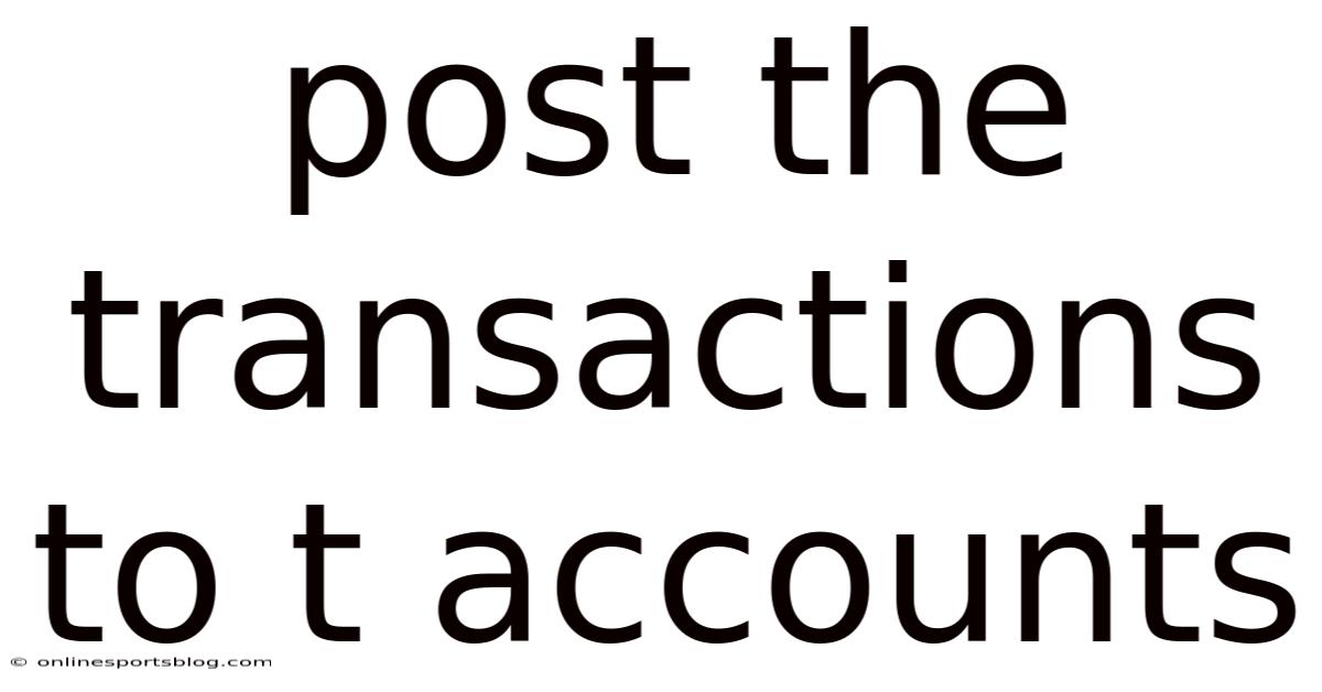 Post The Transactions To T Accounts