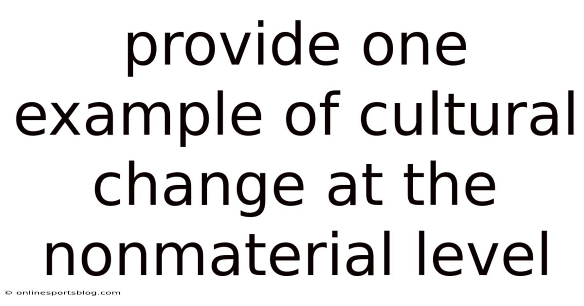 Before examining this specific example, Make sure you understand what nonmaterial cultural change entails. It matters. Nonmaterial culture encompasses the intangible aspects of society that include beliefs, values, norms, customs, language, and symbols. When we speak of cultural change at the nonmaterial level, we refer to shifts in how people conceptualize right and wrong, acceptable and unacceptable, desirable and undesirable Worth keeping that in mind..