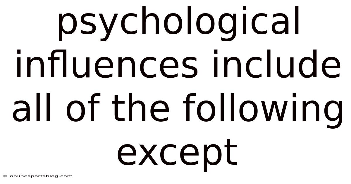 Now that we’ve outlined the psychological influences, the next step is to identify what does not fit. The phrase “psychological influences include all of the following except” typically presents a list of options, one of which is not a psychological factor. Common distractors might include physical, environmental, or biological factors That's the part that actually makes a difference..