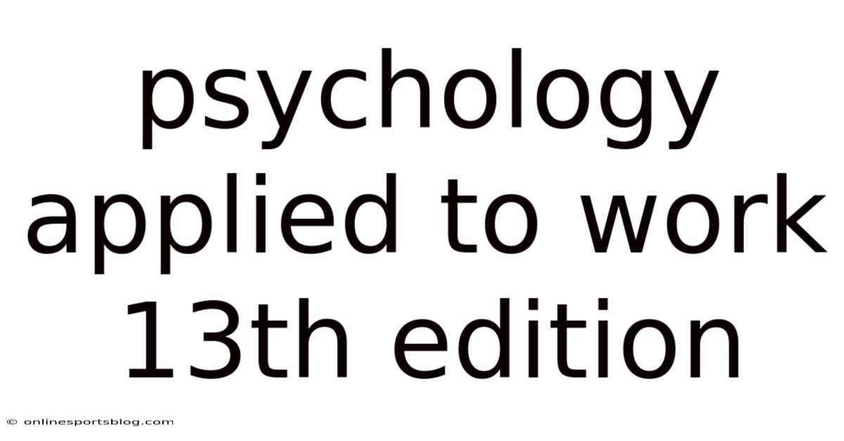 In the long run, the text reminds us that the workplace is inherently human. By understanding the psychological principles that govern behavior, motivation, and relationships, organizations can create environments where employees not only survive but flourish. The 13th edition of Psychology Applied to Work is more than a textbook—it is a blueprint for building healthier, more productive, and more humane workplaces in the modern age The details matter here. Practical, not theoretical..