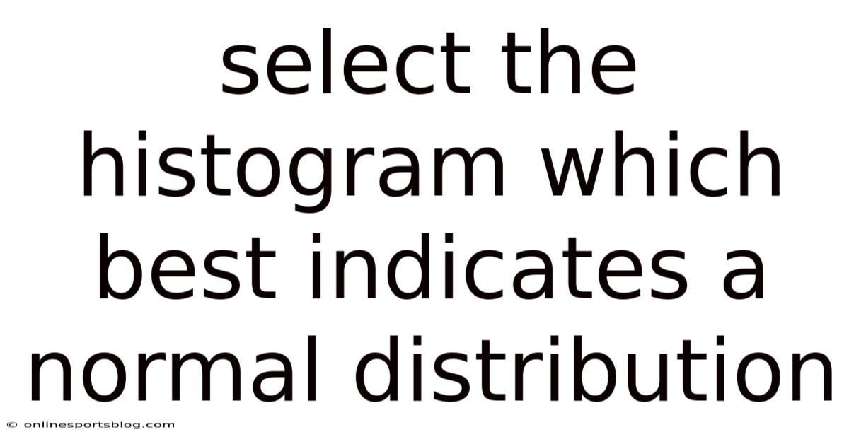 Understanding the histogram is a crucial step in analyzing data, especially when it comes to determining the normal distribution. And a histogram serves as a visual representation of data frequency, making it easier to identify patterns, outliers, and the overall shape of the distribution. When you're trying to select the histogram that best indicates a normal distribution, you're essentially looking for a shape that resembles a bell curve. This shape is characterized by symmetry around the mean, with the majority of data points clustering near the center and tapering off gradually towards the extremes Surprisingly effective..