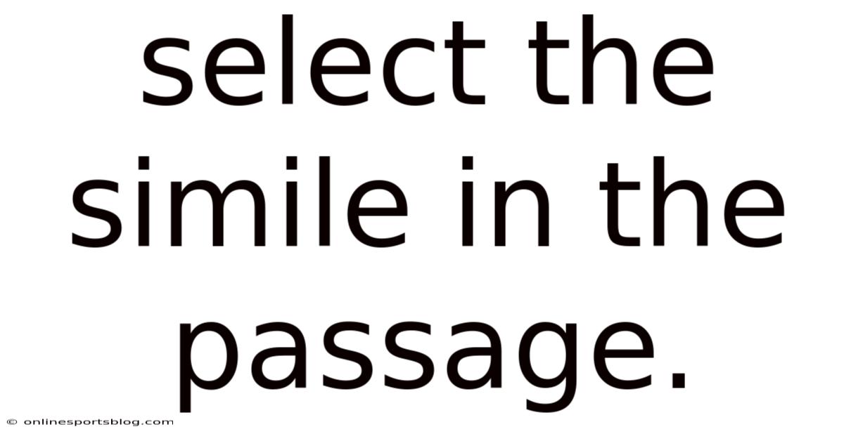 Identifying similes in literary passages is a fundamental skill in literary analysis and reading comprehension. Similes are powerful literary devices that enhance imagery, create vivid mental pictures, and add depth to writing. Think about it: when asked to "select the simile in the passage," readers must recognize these figurative language elements that compare two unlike things using the words "like" or "as. " This guide will help you develop the ability to identify, analyze, and appreciate similes in any text you encounter.