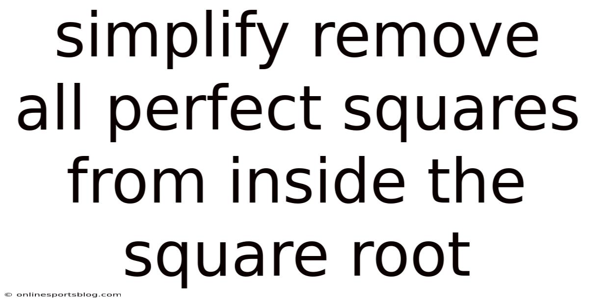 Simplifying Square Roots: Removing All Perfect Squares from Inside the Radical