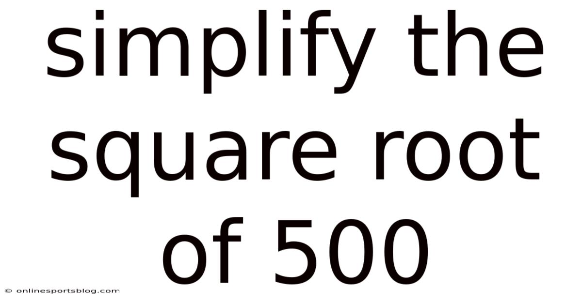 At the end of the day, simplifying the square root of 500, and radicals in general, is a valuable skill rooted in prime factorization and recognizing perfect square factors. By following the outlined steps – factoring, identifying, extracting, and simplifying – you can confidently transform complex radicals into their simplest form. This process not only provides a more manageable representation of the square root but also lays the groundwork for more advanced mathematical concepts and problem-solving techniques. Mastering this skill empowers you to manage the world of radicals with greater ease and understanding.