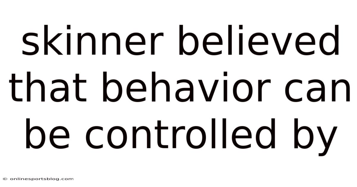 Skinner Believed That Behavior Can Be Controlled By: Understanding B.F. Skinner's Behaviorist Theory