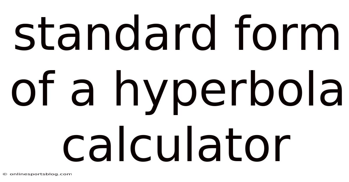 Before diving into the mechanics of any computational tool, it is essential to grasp what the standard form actually represents. A hyperbola is a fundamental type of conic section formed when a plane intersects both halves of a double cone, creating two distinct, mirror-image curves that extend infinitely. In coordinate geometry, its equation is typically written in one of two standard forms depending on its orientation: