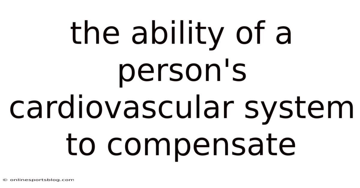 The abilityof a person’s cardiovascular system to compensate is a remarkable and vital function that ensures the body maintains stability despite internal or external stressors. Worth adding: this compensatory mechanism is not just a passive process but an active, dynamic response orchestrated by the heart, blood vessels, and nervous system. When the body faces challenges such as physical exertion, illness, or environmental changes, the cardiovascular system adapts to preserve adequate blood flow, oxygen delivery, and pressure regulation. Understanding how this system compensates provides insight into both normal physiology and the underlying causes of cardiovascular diseases.