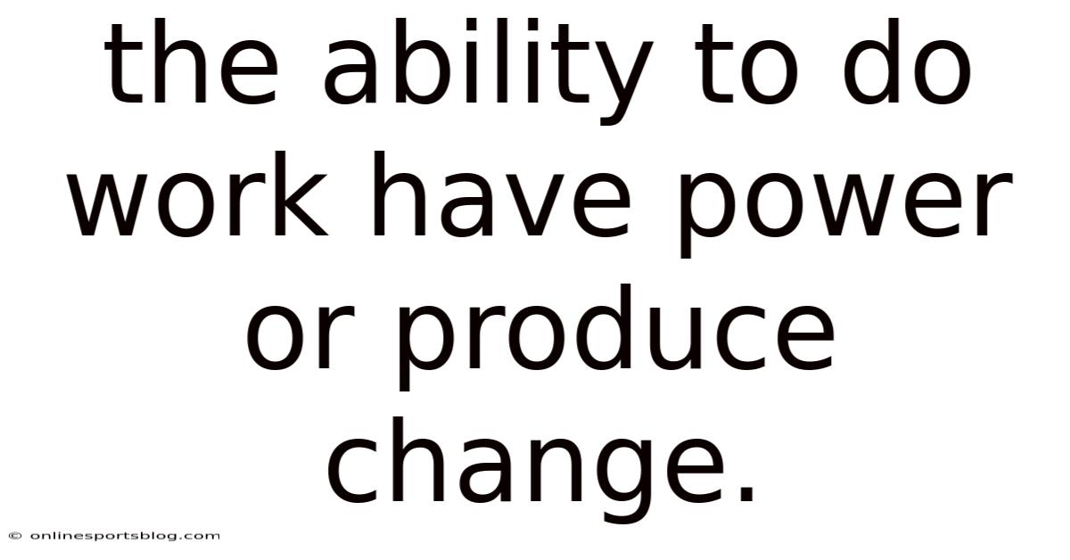 The Ability To Do Work Have Power Or Produce Change.