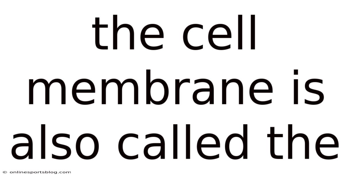 The Cell Membrane Is Also Called The