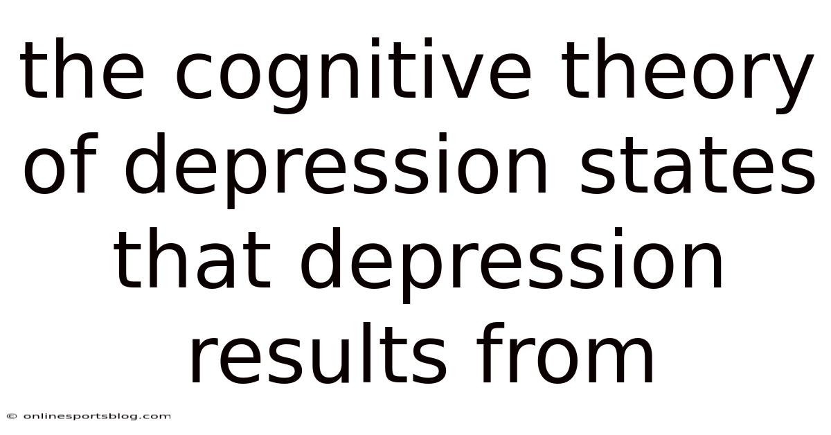 The cognitive theory of depression was largely developed by psychiatrist Aaron Beck in the 1960s. Beck proposed that depression is maintained by a triad of negative thoughts: negative views about oneself, negative interpretations of ongoing experiences, and negative expectations about the future. These three components are known as the cognitive triad. Take this: someone experiencing depression might think, "I am worthless," "Nothing ever goes right for me," and "Things will never improve." These thoughts are not just fleeting feelings—they become deeply ingrained beliefs that shape how a person perceives reality And that's really what it comes down to. Nothing fancy..