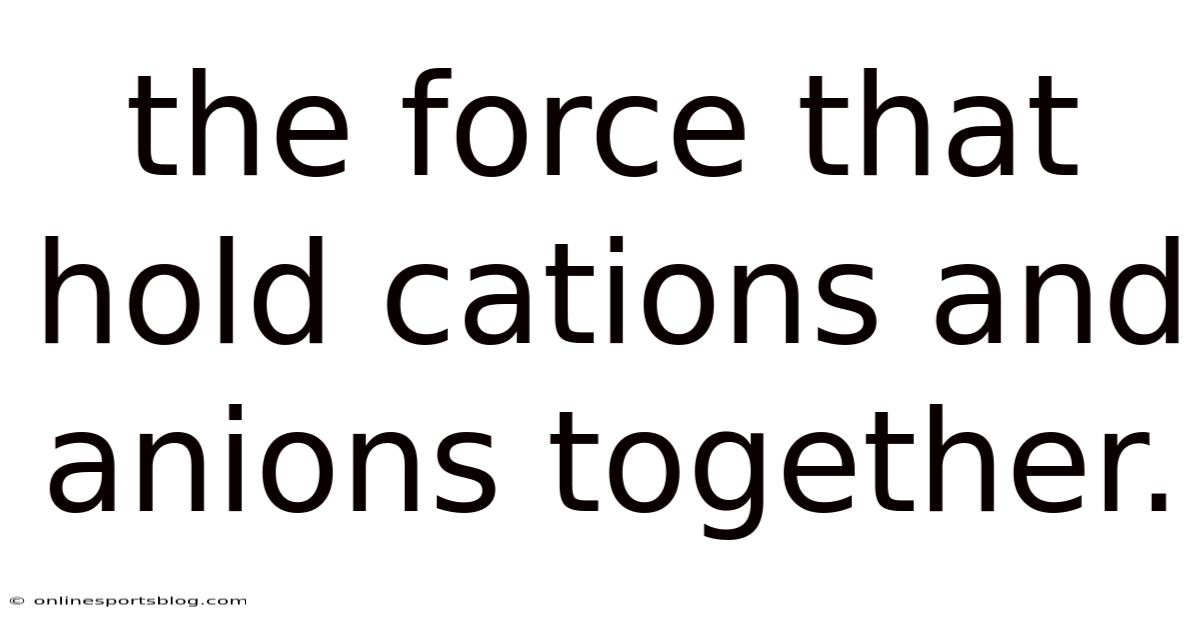 Understanding the force that holds cations and anions together is essential for grasping the fundamental workings of chemistry, biology, and materials science. That's why at the heart of this interaction lies a fascinating interplay of forces that govern how ions behave in different environments. Because of that, whether you're exploring the behavior of ions in a solution, the structure of a crystal, or the function of a biological system, this topic reveals the invisible threads that keep everything in place. Let’s dive into the science behind these forces and how they shape the world around us Not complicated — just consistent..