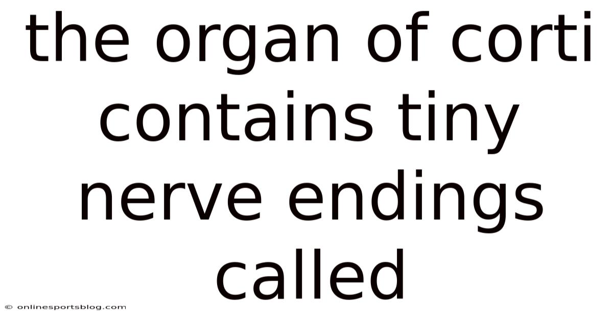 What exactly are the tiny nerve endings in the organ of Corti called? They are called hair cells, specifically categorized into inner and outer hair cells. These mechanoreceptors convert physical vibrations into electrochemical signals that the brain interprets as sound.