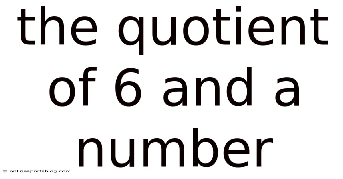 To begin, it’s crucial to define what a quotient is. As an example, if the number is 2, the quotient of 6 and 2 is 3, because 6 ÷ 2 = 3. That said, when the divisor is not specified, the quotient becomes a general expression: 6 ÷ x. In this case, the dividend is fixed at 6, while the divisor is a variable number, often represented as x or n. In mathematics, a quotient is the result of dividing one number (the dividend) by another (the divisor). This expression can take on infinite values depending on the choice of x, making it a versatile concept in algebra and arithmetic It's one of those things that adds up. Turns out it matters..
