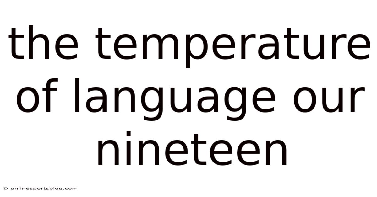 The concept of "the temperature of language our nineteen" may initially seem abstract or even paradoxical. Still, this phrase invites a deeper exploration of how language functions as a dynamic tool that carries emotional, cultural, and contextual "heat" or "coolness.At first glance, it appears to blend a metaphorical idea—temperature—with a numerical reference—nineteen. " In this article, we will dissect what "temperature" signifies in the context of language, how it interacts with the number nineteen, and why understanding this interplay matters for effective communication The details matter here..