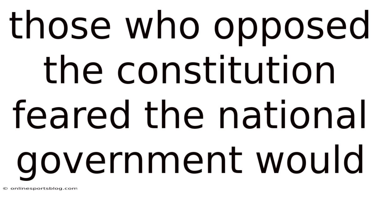 Those Who Opposed The Constitution Feared The National Government Would