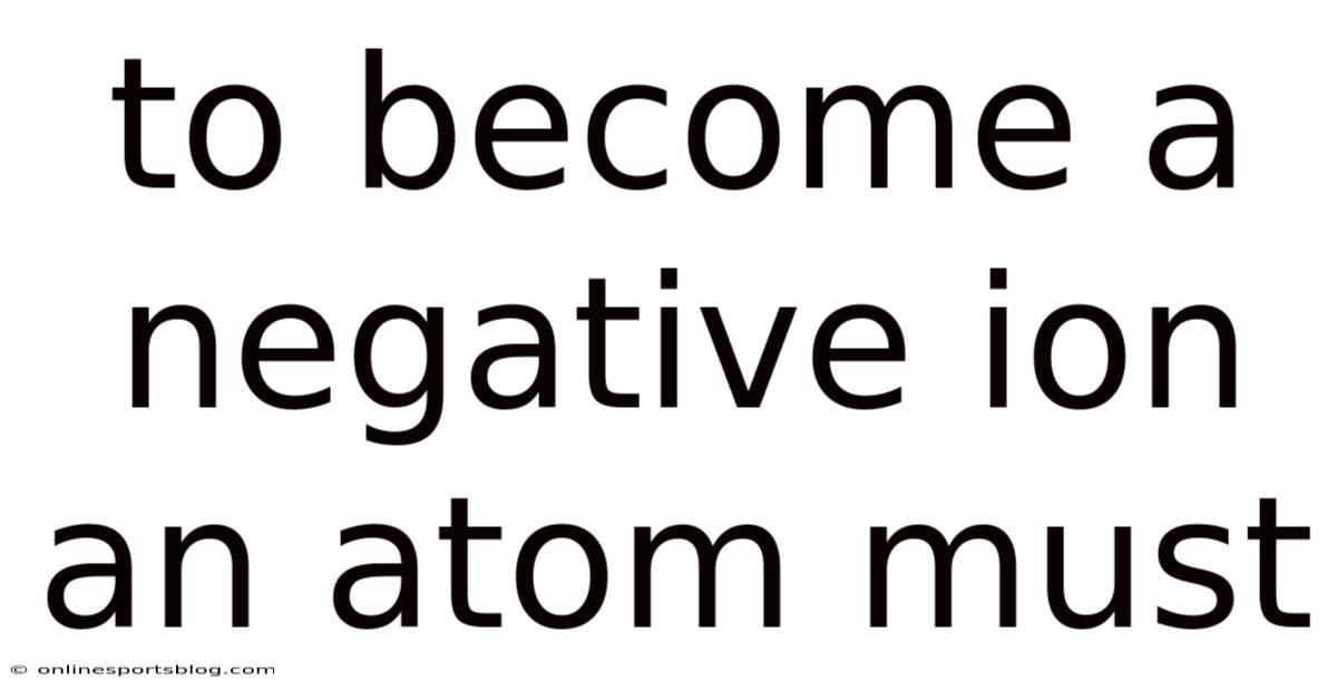 To become a negative ion, an atom must gain an electron in a context where the energy balance favors attachment. This requires a combination of high electron affinity, manageable electron-electron repulsion, and often supportive environmental factors such as solvent stabilization, temperature control, or external energy input. Understanding these principles not only clarifies the behavior of atoms in isolation but also informs the design of technologies ranging from water treatment to semiconductor fabrication. By appreciating the delicate interplay of forces that govern negative ion formation, scientists and engineers can better predict, manipulate, and harness these charged species for diverse applications Nothing fancy..