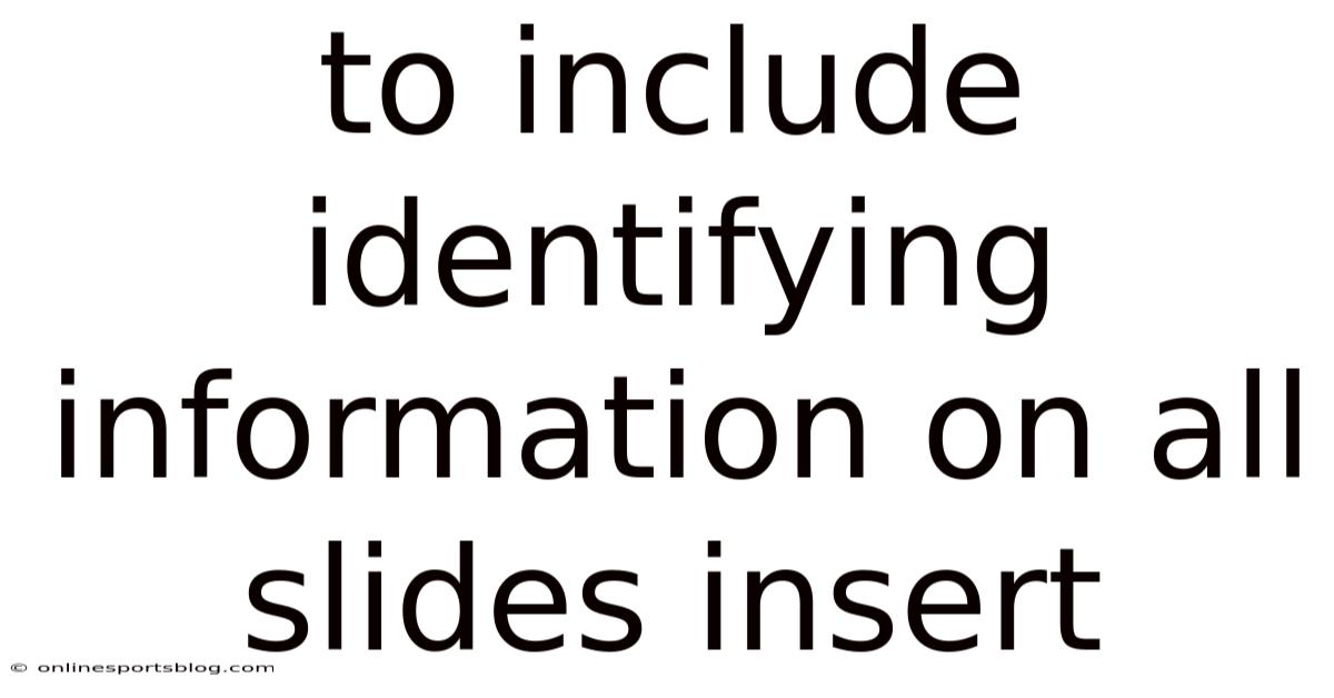Identifying information on all slides insert is a fundamental practice for anyone who wants their presentations to be clear, professional, and memorable. When each slide carries consistent identifiers—such as a title, logo, slide number, or subtle watermark—you help the audience quickly orient themselves, track progress, and retain key messages. This article explores the importance of embedding identifying information on every slide, outlines a step‑by‑step method for doing it efficiently, and offers best‑practice tips to keep your deck polished from start to finish.