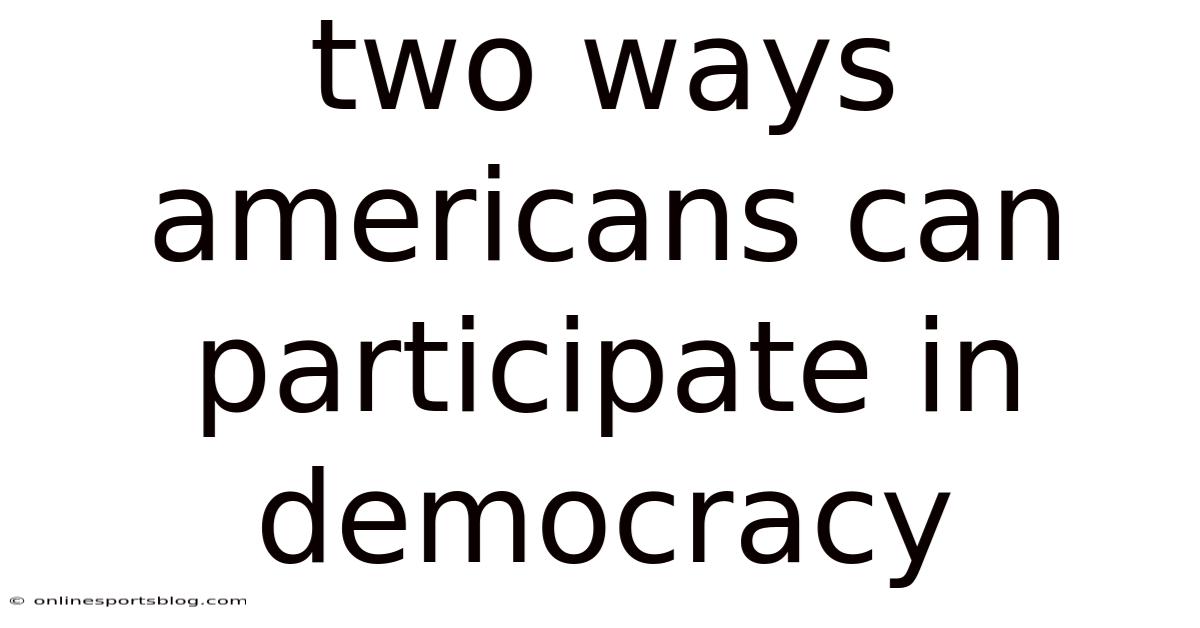 American democracy thrives when its citizens activelyengage in the political process, and understanding two ways Americans can participate in democracy is essential for anyone who wants to make a tangible impact. While the idea of “making a difference” can feel overwhelming, the reality is that everyday actions—especially voting and grassroots involvement—can shape policies, influence leaders, and strengthen the nation’s civic fabric. This article breaks down these two powerful avenues, explains why they matter, and offers practical steps you can take right now Easy to understand, harder to ignore..