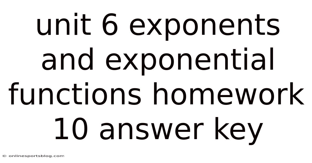 To begin, let's break down the core components of unit 6. So the main goal is to understand how to work with exponents and apply them to exponential functions. Which means this section will guide you through the essential concepts, ensuring you grasp the material thoroughly. By the end of this guide, you will have a clear roadmap to tackle your homework and enhance your skills Which is the point..