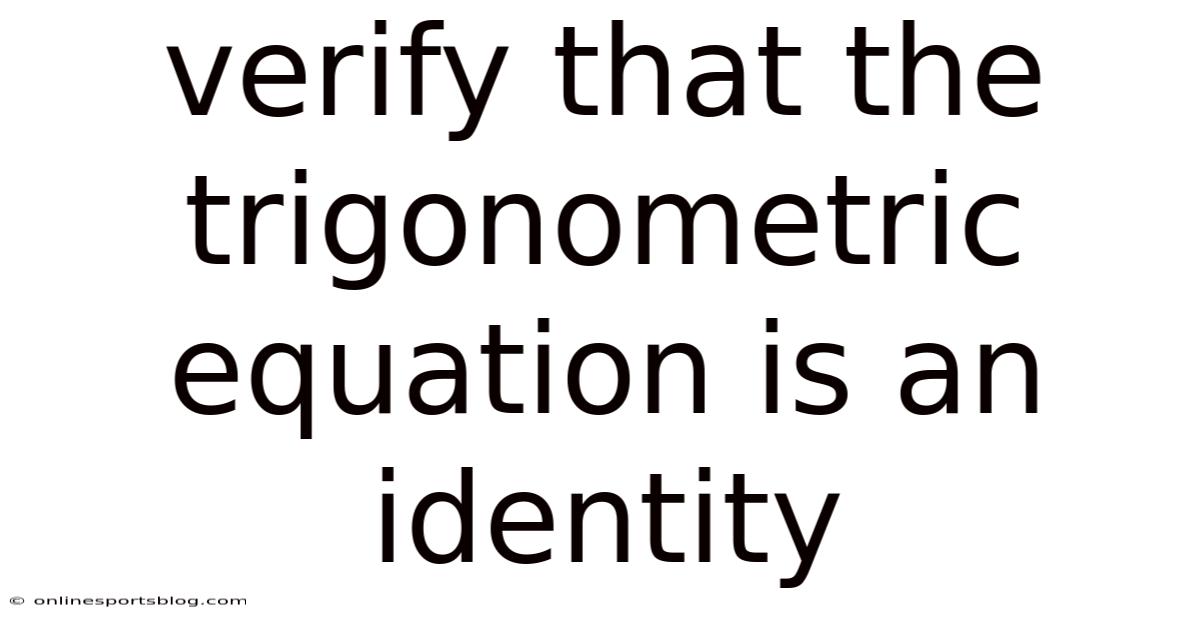 Verify That The Trigonometric Equation Is An Identity