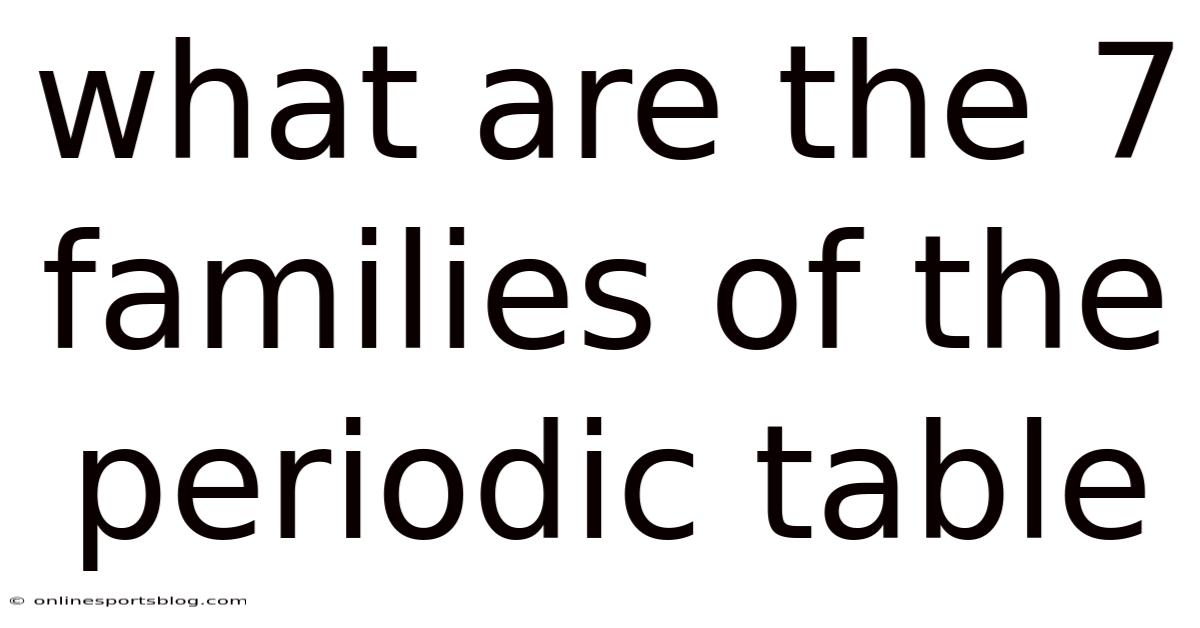 Understanding the structure of the periodic table is essential for grasping the organization of elements and their properties. Worth adding: at the heart of this organization lies a system that groups elements into families based on their chemical behavior and atomic structure. The periodic table is divided into seven distinct families, each representing a unique set of elements that share similar characteristics. These families are not arbitrary; they reflect fundamental trends in the properties of matter and the way atoms interact. By exploring these seven families, we can better understand the underlying principles that govern the behavior of elements.