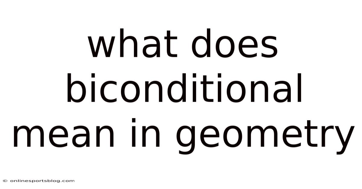 What Does Biconditional Mean in Geometry serves as a fundamental concept that bridges logical reasoning with spatial understanding, forming the backbone of deductive proofs and geometric theorems. In the realm of mathematics, particularly within the structured world of shapes, angles, and lines, this logical operator ensures that definitions are precise and statements are universally valid. Unlike simple conditional statements that move in one direction, a biconditional establishes a two-way relationship, meaning that both the statement and its converse must hold true simultaneously. This article will explore the definition, application, and significance of this logical tool, providing a comprehensive understanding for students and enthusiasts seeking to master geometric principles Less friction, more output..