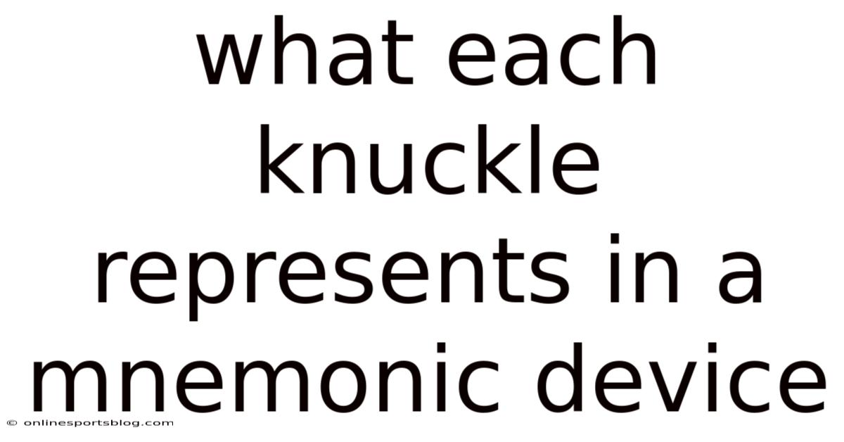In the realm of cognitive psychology and educational strategies, mnemonic devices serve as powerful tools designed to enhance memory retention through associative techniques. Among these, knuckles have emerged as a unique and versatile mnemonic device, leveraging their distinct physical characteristics to encode information effectively. Worth adding: this article walks through the symbolic significance of each knuckle, exploring how their unique positions and shapes translate into meaningful associations across various domains. By examining the interplay between anatomy and cognition, we uncover insights into how tactile elements can transcend their physical form to become foundational tools in learning and memory optimization. Whether teaching children, professionals, or lifelong learners, the knuckles offer a tactile bridge between abstract concepts and tangible understanding, making them a compelling choice for diverse educational contexts. Their simplicity belies their profound potential, offering a bridge between the mundane and the profound, allowing individuals to internalize knowledge through touch while retaining its conceptual essence. This exploration will unravel the layers behind each knuckle’s role, revealing how a single finger or toe can encapsulate complex ideas, thereby transforming passive reception of information into active engagement. Also, through this lens, we aim to illuminate not only the practical applications of knuckle-based mnemonics but also their psychological underpinnings, ensuring readers grasp both the practicality and the human-centric nature of these tools. The subsequent sections will dissect each knuckle individually, dissecting its symbolic weight, historical context, and contemporary relevance, ultimately positioning the knuckles as more than mere anatomical features but as silent collaborators in the art of memory preservation.