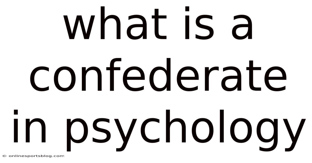 A confederate in psychology is an individual who pretends to be a participant in a research study but is actually working with the researcher to influence the experiment's outcome. This term is often used in social psychology experiments where the presence and behavior of the confederate are carefully orchestrated to elicit specific responses from genuine participants Not complicated — just consistent..