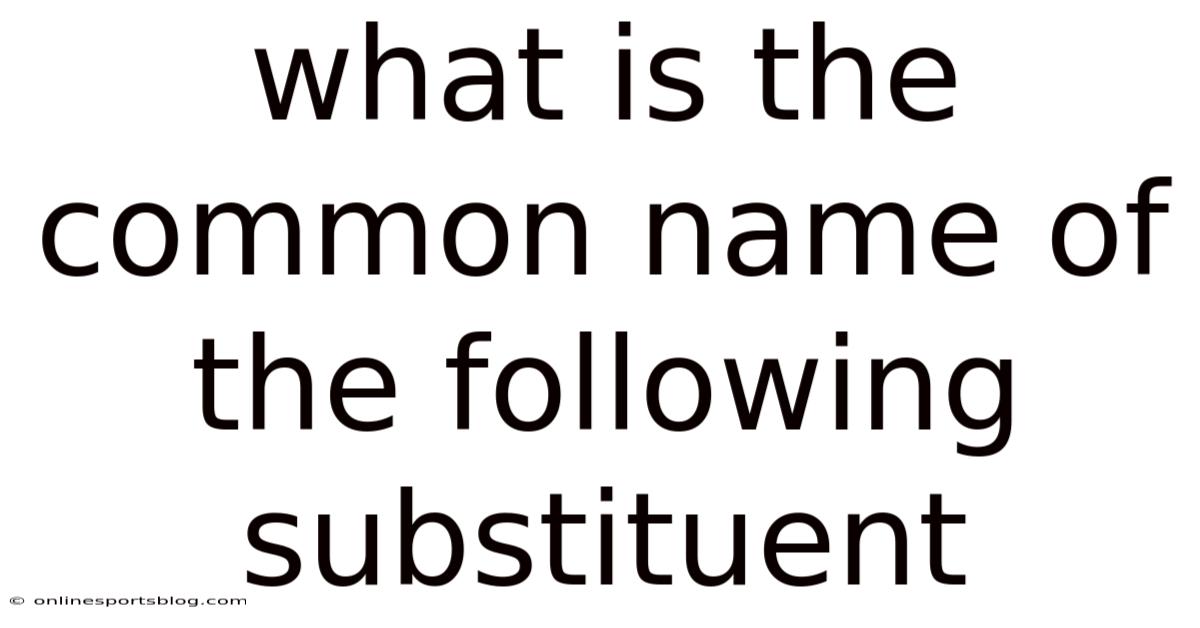 The common nameof the following substituent is a key concept in organic chemistry that bridges the gap between formal IUPAC nomenclature and the everyday language used by chemists in the laboratory and industry. When you encounter a structural diagram or a textual description of a functional group attached to a parent chain, recognizing its traditional or “trivial” name allows you to communicate quickly, interpret reaction mechanisms, and understand literature without constantly translating systematic names. This article will guide you through a systematic approach to identify the common name of any substituent, explain the underlying principles that govern naming, and provide a set of frequently asked questions to reinforce your learning. By the end, you will be equipped to translate complex substituent structures into the familiar terms that dominate textbooks, research papers, and practical applications Worth keeping that in mind. That's the whole idea..