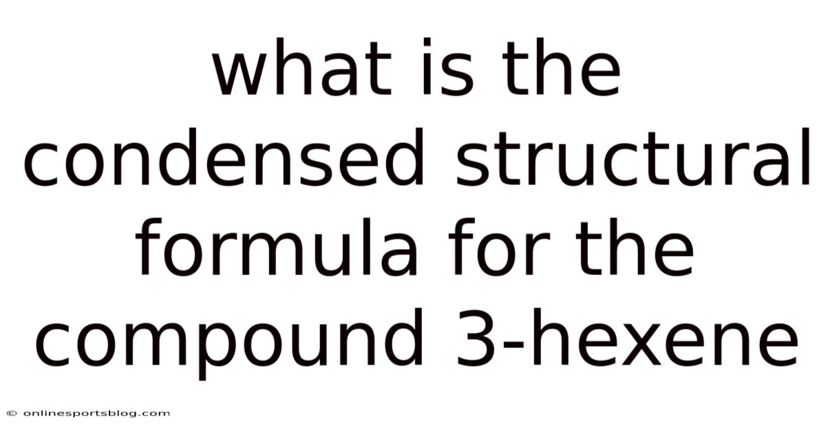 To understand the condensed structural formula, we must first break down the components of the molecule. Still, the formula of 3-hexene can be written in different ways depending on how we represent the double bond. In real terms, the most common representation is CH₃CH₂CH=CHCH₂CH₃, which shows the chain of carbon atoms with the double bond positioned between the third and fourth carbon atoms. This arrangement is crucial because it determines the compound’s reactivity and its use in synthesis.