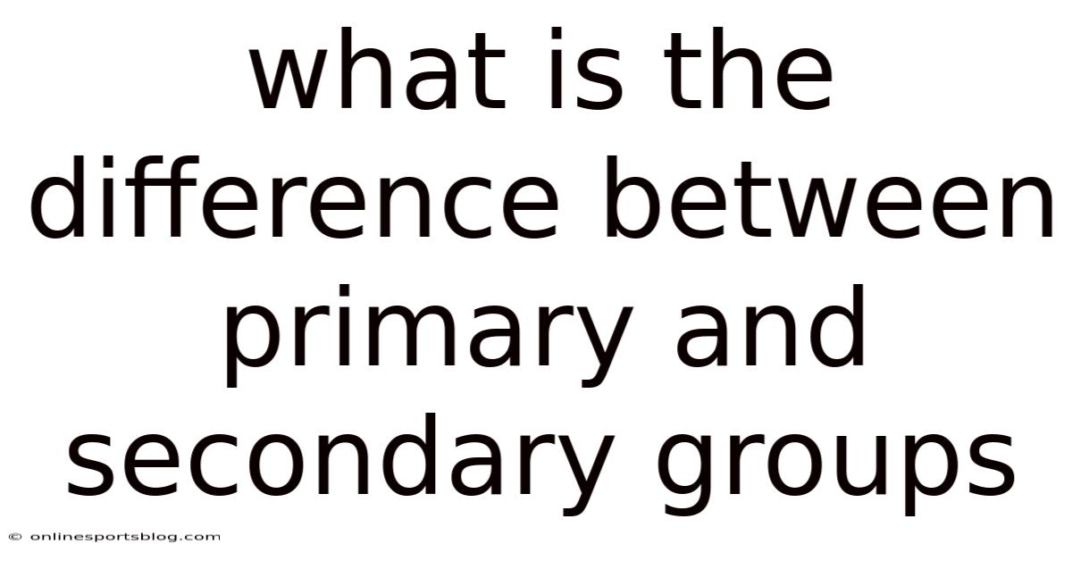 - What is the main difference between primary and secondary groups? The main difference between primary and secondary groups is the level of intimacy, emotional connection, and purpose. Primary groups are small, intimate, and formed for emotional support and companionship, while secondary groups are larger, more formal, and formed for specific purposes or goals.