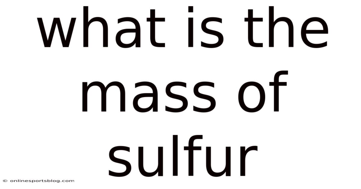 Sulfur is one of the most essential elements in chemistry, playing a crucial role in everything from biological processes to industrial applications. On the flip side, if you've ever wondered about the mass of sulfur, whether in terms of its atomic mass, molar mass, or how it behaves in compounds, this practical guide will provide you with all the answers. Understanding sulfur's mass properties is fundamental for students, researchers, and professionals working in chemistry, biology, and materials science Easy to understand, harder to ignore..