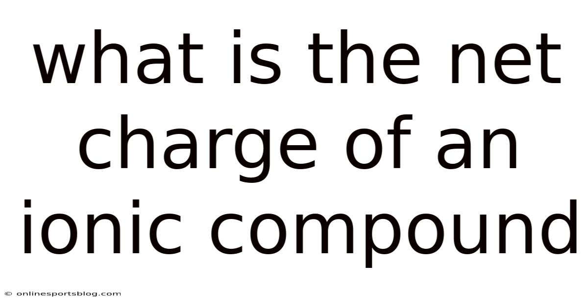 Understanding the net charge of an ionic compound is fundamental for anyone diving into chemistry, whether you're a student, teacher, or curious learner. When we talk about ionic compounds, we're referring to substances formed when metals react with nonmetals, resulting in the formation of positively charged cations and negatively charged anions. Plus, this process creates a stable structure through electrostatic forces, but what does this mean for the overall charge of the compound? Let’s explore this concept in detail, ensuring clarity and depth for readers seeking a comprehensive understanding And that's really what it comes down to. Practical, not theoretical..