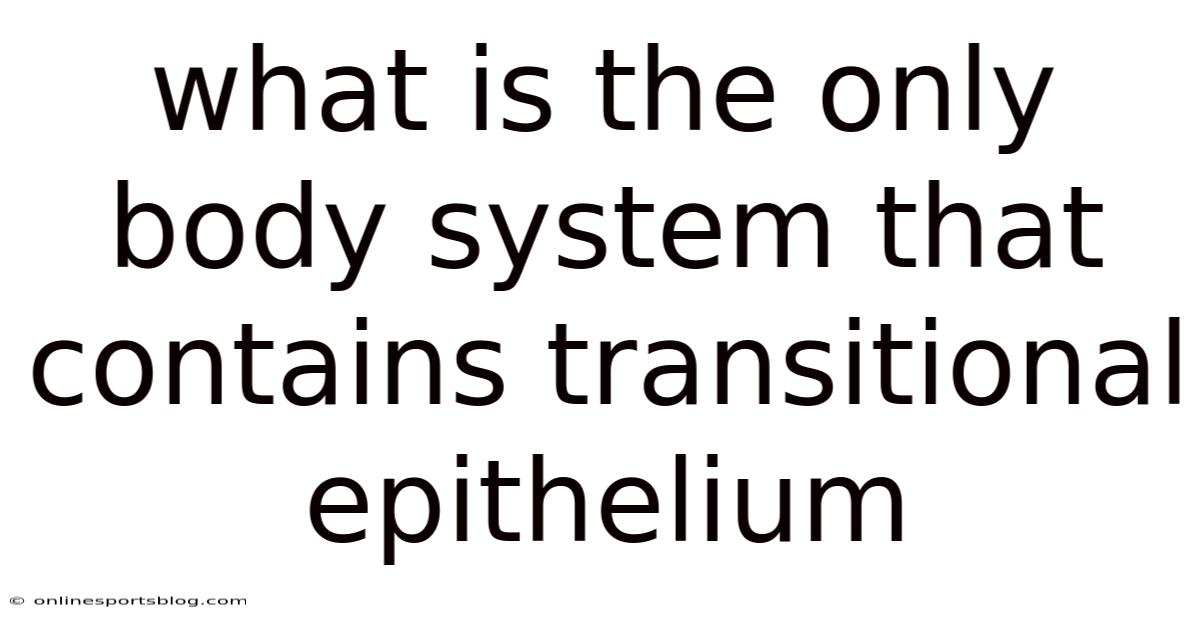 Simply put, transitional epithelium is a versatile, stretch‑responsive epithelial layer that lines the bladder, ureters, renal pelvis, and urethra. Because this tissue type is exclusively present in that system, the urinary tract stands alone as the only body system that contains transitional epithelium. Day to day, its unique ability to expand and contract while maintaining a impermeable barrier makes it indispensable for the urinary system’s function of storing and transporting urine. Understanding this exclusivity not only clarifies anatomical distinctions but also underscores the importance of preserving urinary health to prevent diseases such as transitional cell carcinoma.