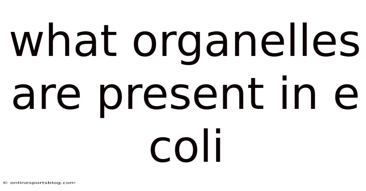 When exploring the microscopic world of bacteria, one of the most common questions students and researchers ask is what organelles are present in E. Because of that, coli. The straightforward answer is that Escherichia coli does not contain traditional, membrane-bound organelles like those found in plant or animal cells. Even so, instead, this widely studied bacterium relies on a collection of specialized, non-membrane-bound cellular structures that perform essential life functions with remarkable efficiency. Understanding these components reveals how prokaryotic organisms thrive, adapt, and serve as foundational models in molecular biology, medicine, and biotechnology Nothing fancy..